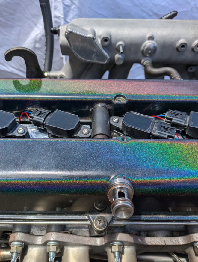 This conversion kit is for Toyota Yaris coil packs installed on 1JZ non VVT-i engine. The kit is recommended to be used with Bosch Ignition coil 0 986 AG0 502, BIC729 or Toyota OEM. This kit retains the factory crossover breathers that run between both cam covers.